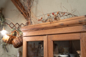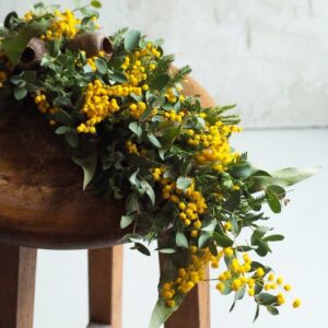 アジサイは小さな花(装飾花)が集まった構造で、ボリュームがあり、リースやスワッグにすると一気に“作品感”が出ます。一方で、花が密集しているぶん水分が残りやすく、乾燥が長引くと色が変わりやすいのが特徴です。